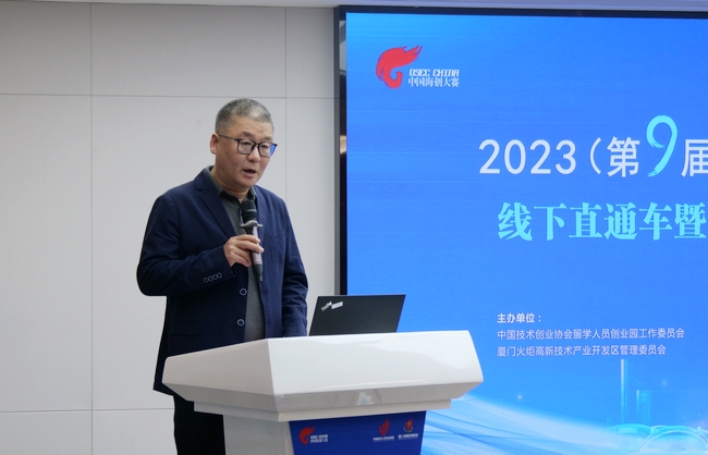522日,2023(第九屆)中國海歸創(chuàng)業(yè)大賽線下直通車暨“海創(chuàng)中國”導(dǎo)師行(廈門站)在廈門留學(xué)人員創(chuàng)業(yè)園圓滿舉辦?;顒佑芍袊夹g(shù)創(chuàng)業(yè)協(xié)會留學(xué)人員創(chuàng)業(yè)園工作委員會、廈門火炬高技術(shù)產(chǎn)業(yè)開發(fā)區(qū)管理委員會共同主辦,廈門高新技術(shù)創(chuàng)業(yè)中心有限公司(廈門留學(xué)人員創(chuàng)業(yè)園)、廈門高新科創(chuàng)天使創(chuàng)業(yè)投資有限公司、火炬高新區(qū)海內(nèi)外高層次人才創(chuàng)業(yè)服務(wù)驛站承辦。中國技術(shù)創(chuàng)業(yè)協(xié)會副理事長、留學(xué)人員創(chuàng)業(yè)園工作委員會專職副會長兼秘書長郎靖,留創(chuàng)園工委會副秘書長胡頌華,廈門高新技術(shù)創(chuàng)業(yè)中心有限公司總經(jīng)理鄭鞏固等相關(guān)單位負(fù)責(zé)人及5位評委導(dǎo)師出席活動。