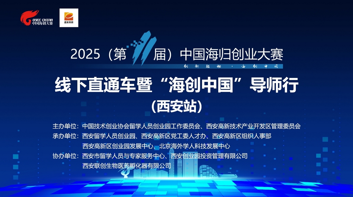 5月20日,2025(第11屆)中國海歸創(chuàng)業(yè)大賽線下直通車暨“海創(chuàng)中國”導(dǎo)師行(西安站)活動在西安高新區(qū)成功舉行。本次活動由中國技術(shù)創(chuàng)業(yè)協(xié)會留學(xué)人員創(chuàng)業(yè)園工作委員會、西安高新技術(shù)產(chǎn)業(yè)開發(fā)區(qū)管理委員會共同主辦,西安留學(xué)人員創(chuàng)業(yè)園、西安高新區(qū)黨工委人才辦、西安高新區(qū)組織人事部、西安高新區(qū)創(chuàng)業(yè)園發(fā)展中心、北京海外學(xué)人科技發(fā)展中心承辦,西安市留學(xué)人員與專家服務(wù)中心、西安創(chuàng)業(yè)園投資管理有限公司、西安聯(lián)創(chuàng)生物醫(yī)藥孵化器有限公司協(xié)辦。留創(chuàng)園工委會產(chǎn)業(yè)與投資促進(jìn)部部長寶玥,西安市留學(xué)人員與專家服務(wù)中心主任蘇晞,西安留學(xué)人員創(chuàng)業(yè)園、西安高新區(qū)創(chuàng)業(yè)園發(fā)展中心主任楊戎,西安高新區(qū)組織人事部副部長劉明宇等出席活動。