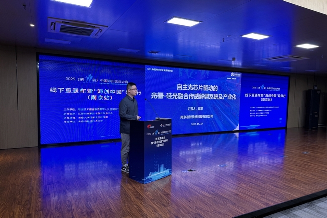6個由南大科技園推薦的海歸創(chuàng)業(yè)項目進(jìn)行了路演,介紹了各自的技術(shù)優(yōu)勢、市場前景、商業(yè)模式以及團(tuán)隊情況,涵蓋新一代信息技術(shù)、生物醫(yī)藥與大健康、綠色環(huán)保、智能制造等新興產(chǎn)業(yè)領(lǐng)域。導(dǎo)師評委們圍繞技術(shù)壁壘、細(xì)分市場、商業(yè)模式等多個維度進(jìn)行了提問和點(diǎn)評。經(jīng)導(dǎo)師團(tuán)現(xiàn)場評議,南京準(zhǔn)智傳感科技有限公司的“自主光芯片驅(qū)動的光柵——硅光融合傳感解調(diào)系統(tǒng)及產(chǎn)業(yè)化”、南京創(chuàng)藍(lán)科技有限公司的“城市碳排放三維立體觀測及碳中和評估智慧管理平臺”、南京生科智藥科技有限公司的“生物智能材料產(chǎn)業(yè)化開發(fā)”3個項目成功入圍本屆中國海歸創(chuàng)業(yè)大賽復(fù)賽。